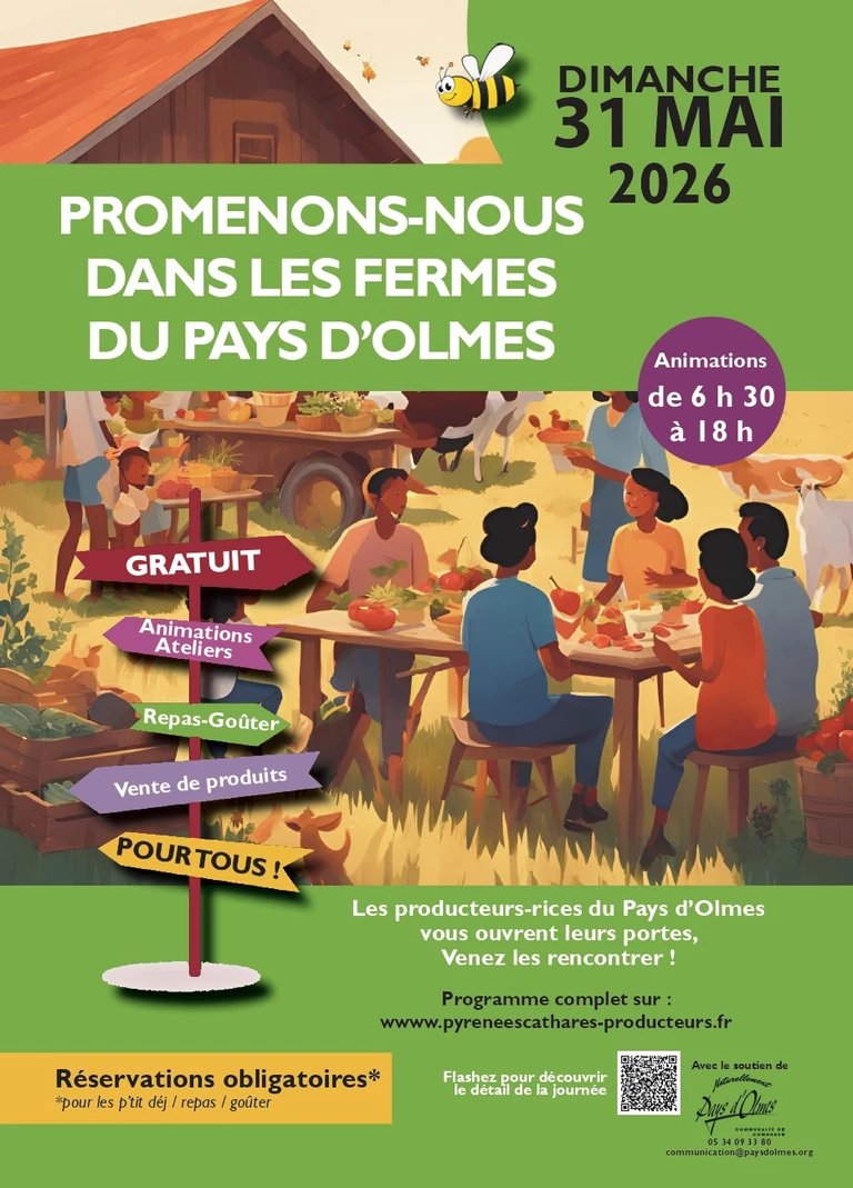 Retrouvez la Moutarde Montségur lors de la journée ‘Promenons-nous dans les fermes du Pays d’Olmes’, le dimanche 31 mai 2026. De 6h30 à 18h, plusieurs fermes ouvrent leurs portes pour des visites, animations, dégustations et vente de produits fermiers. Venez découvrir nos moutardes bio artisanales à Saint Jean d'Aigues Vives au cœur d’un circuit gourmand et convivial en Ariège.